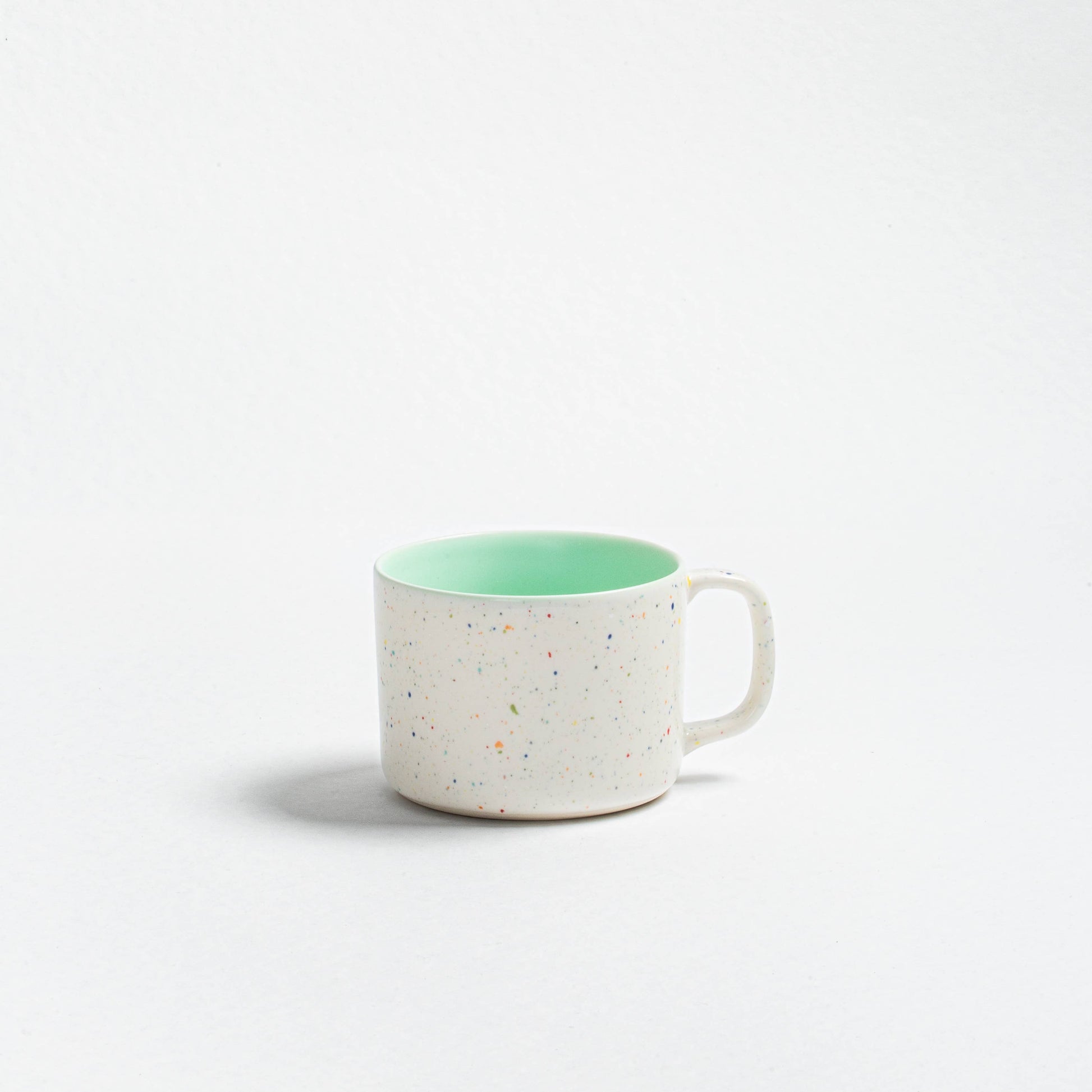 Our Party Collection features a special type of glaze that may exhibit areas where speckles become diffused due to the glass's reactive nature during processing. We find these unique, unpredictable variations to be the most beautiful aspect of the glaze.