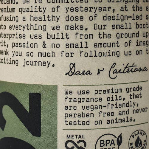 100% natural coconut & soy wax. We use premium grade fragrance oils, that are vegan-friendly, paraben-free, and never tested on animals.